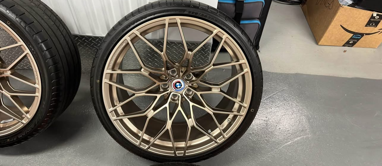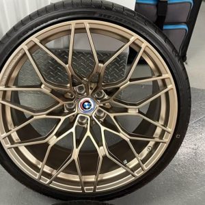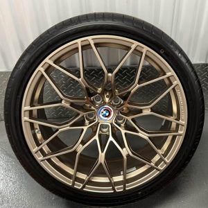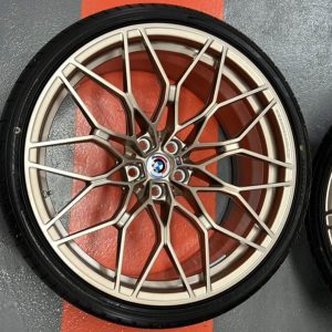 This is a used (only 15–20 miles) set of OEM BMW 1000M Forged Wheels Europe in the rare Frozen Bronze finish, taken off a European-spec BMW M model. These 20”/21” staggered wheels come mounted with near-new Yokohama Advan Sport V107 tires and include OEM BMW TPMS, temperature sensors, and weights. A truly plug-and-play setup for your BMW M3, M4, M2 (G8x) or other compatible 5×112 BMW chassis.