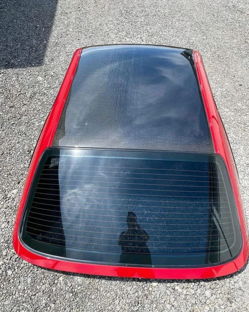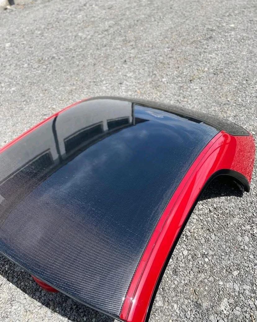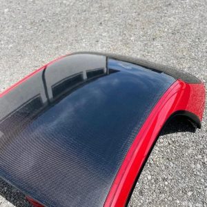 Made to closely match the OEM design, this carbon hardtop features a factory-style fitment with mounting points compatible with original latching hardware. The piece is in good used condition, with light cosmetic wear but no structural damage or cracks. Perfect for track builds, show cars, or lightweight performance applications.