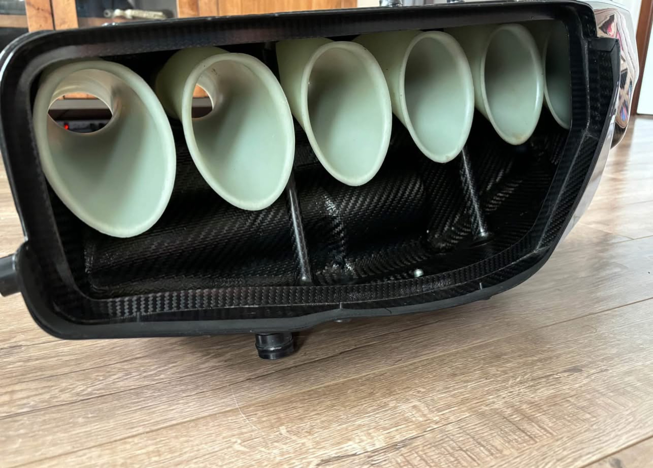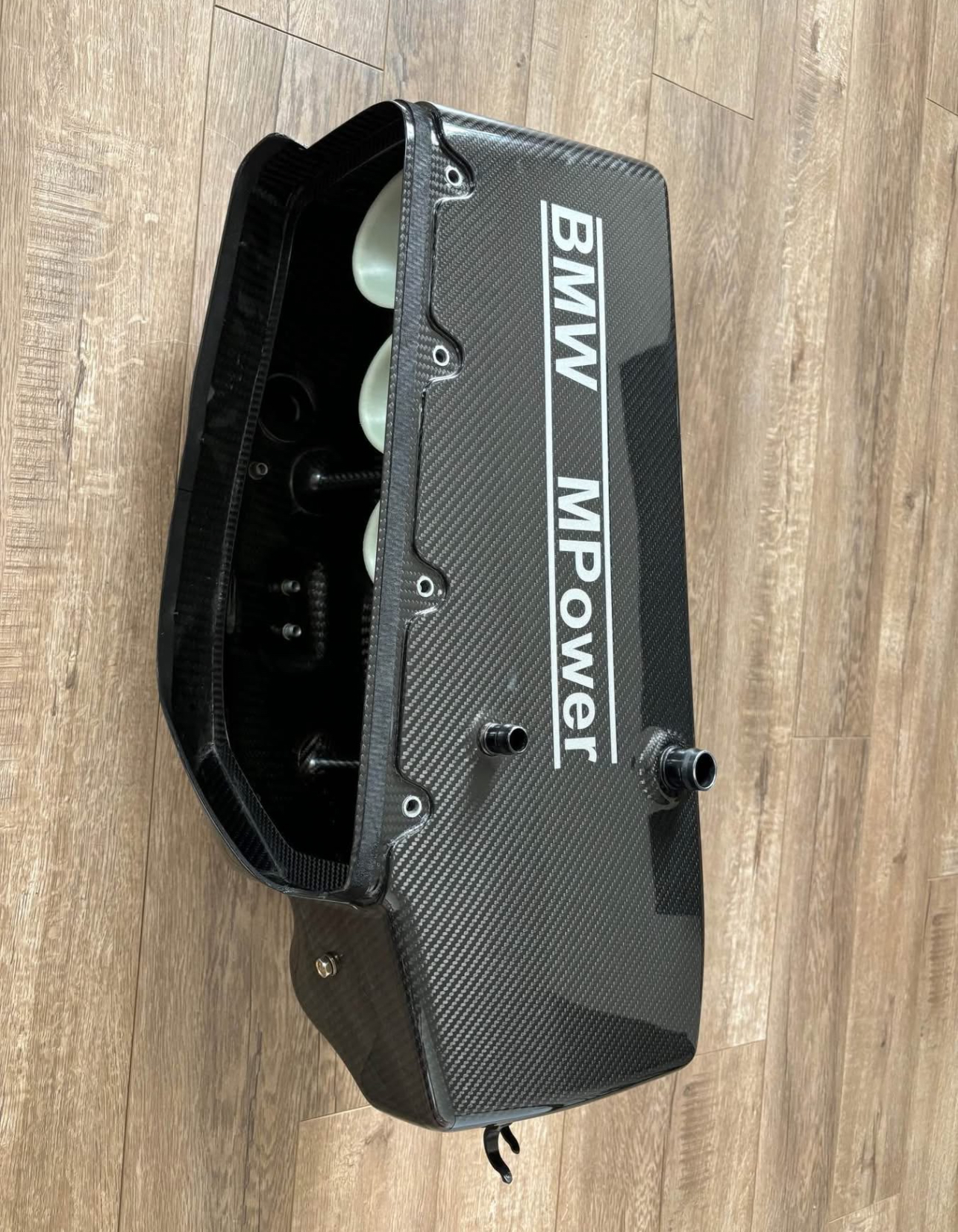 For sale BMW E46 M3 Karbonius CSL Airbox Europe. This is a Rare, NLA plastic trumpet Karbonius CSL airbox. Will come with an OEM filter. Excellent condition, the decal is UNDER the clear coat as this is how Karbonius sold the airbox before they no longer had access to plastic trumpets from BMW. Deeper tone throughout the RPM range compared to the newer full carbon trumpet airboxes.