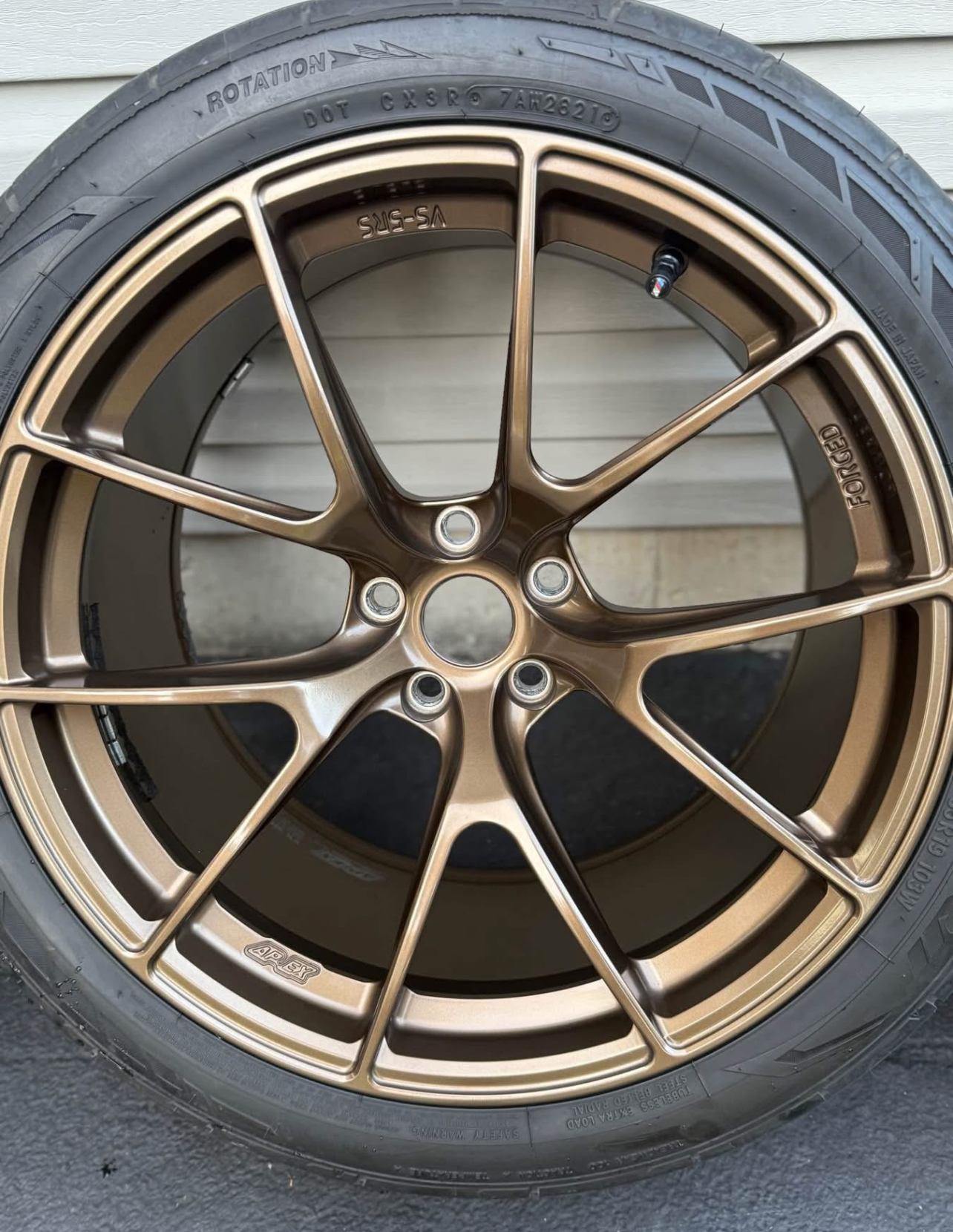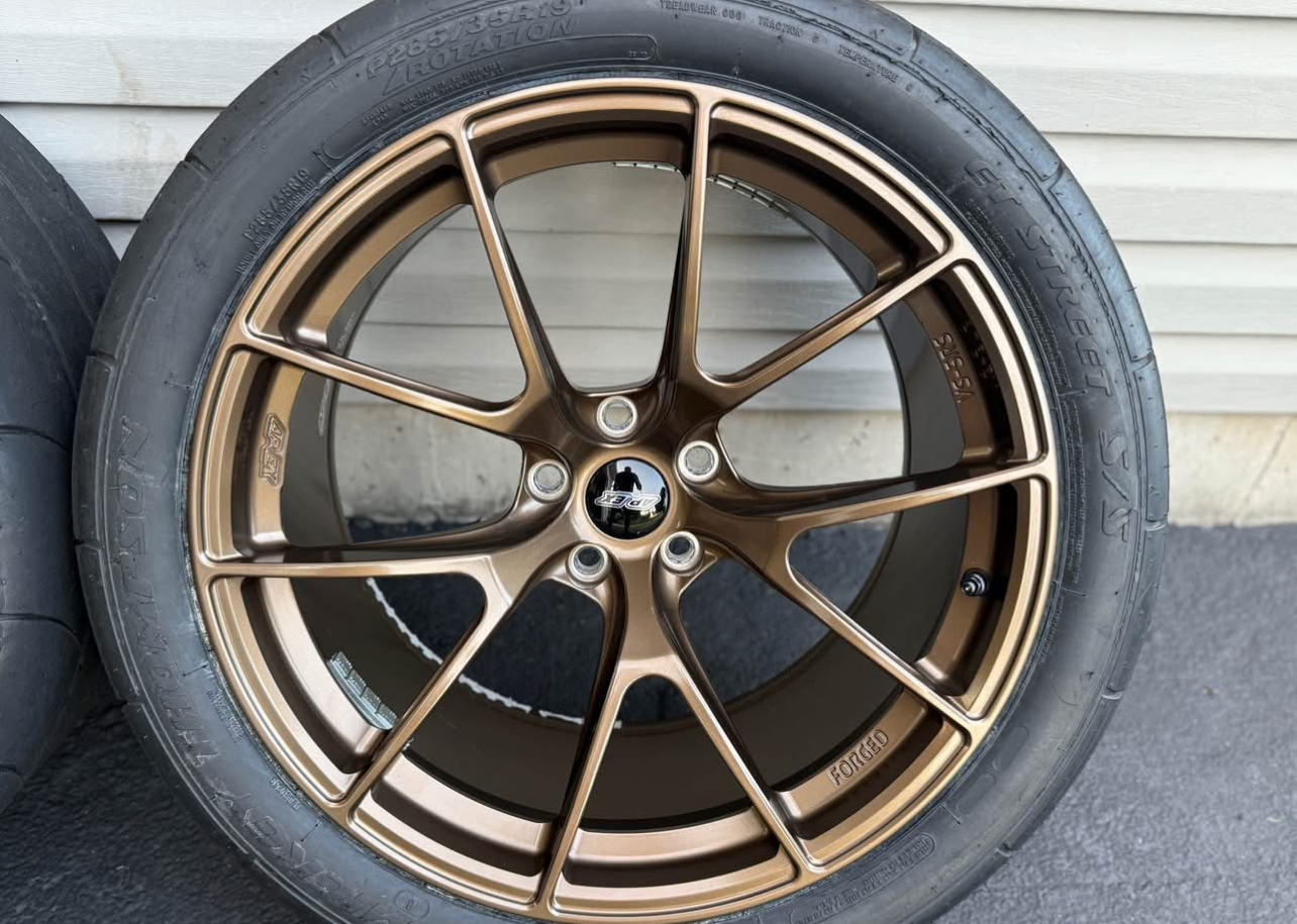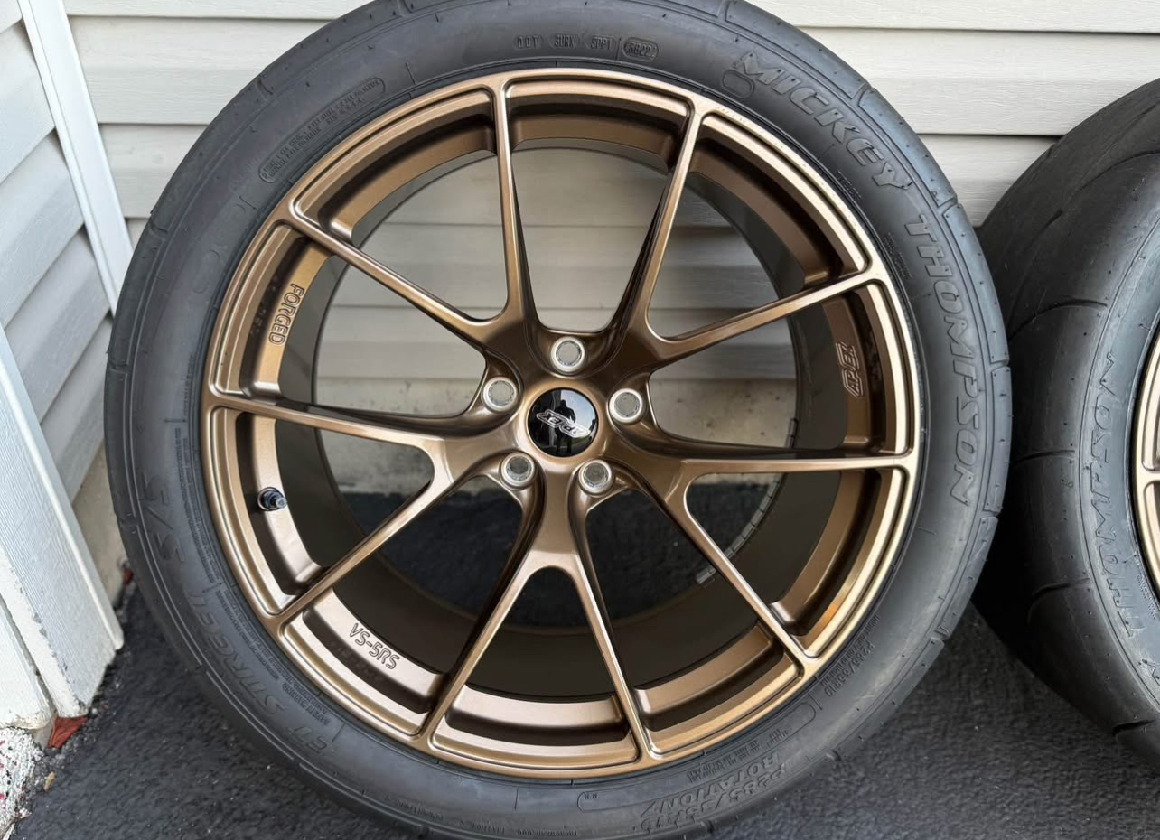 For sale BMW Used Apex VS 5RS wheels Europe. This is a forged 6 wheels in total. 19×10 et12. With bmw tpms sensors. 4 with Nitto 555r2 tires in 285/35r19 size. 2 with Mickey Thompson ET Street SS in 285/35r19