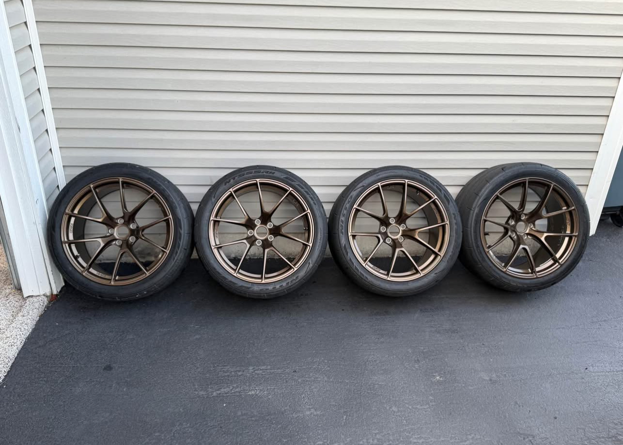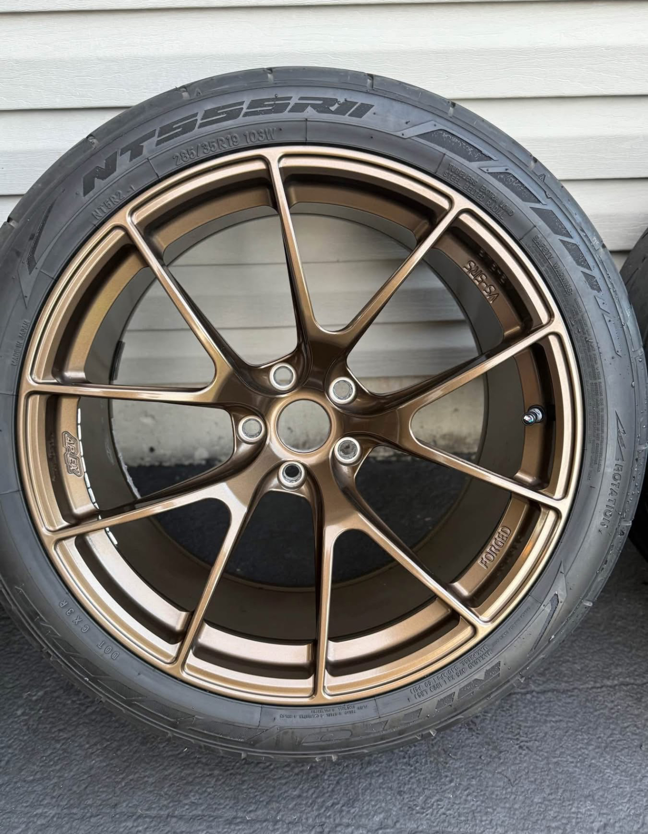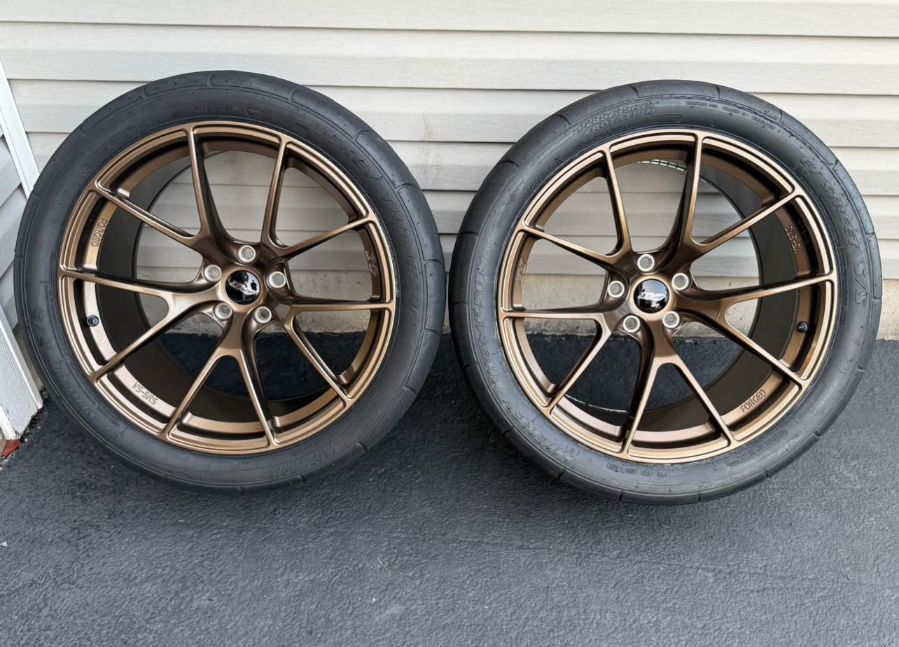 For sale BMW Used Apex VS 5RS wheels Europe. This is a forged 6 wheels in total. 19×10 et12. With bmw tpms sensors. 4 with Nitto 555r2 tires in 285/35r19 size. 2 with Mickey Thompson ET Street SS in 285/35r19