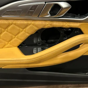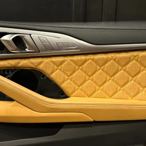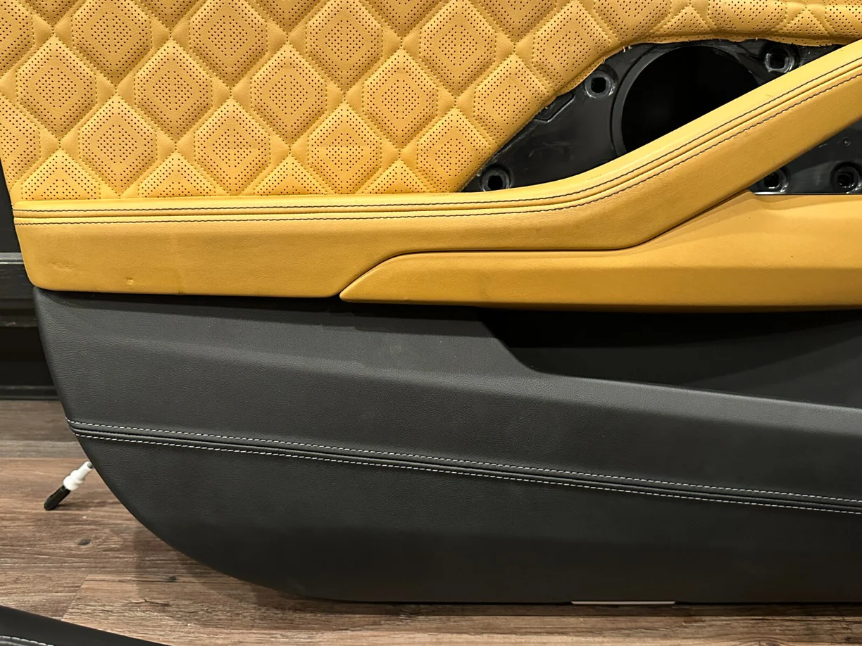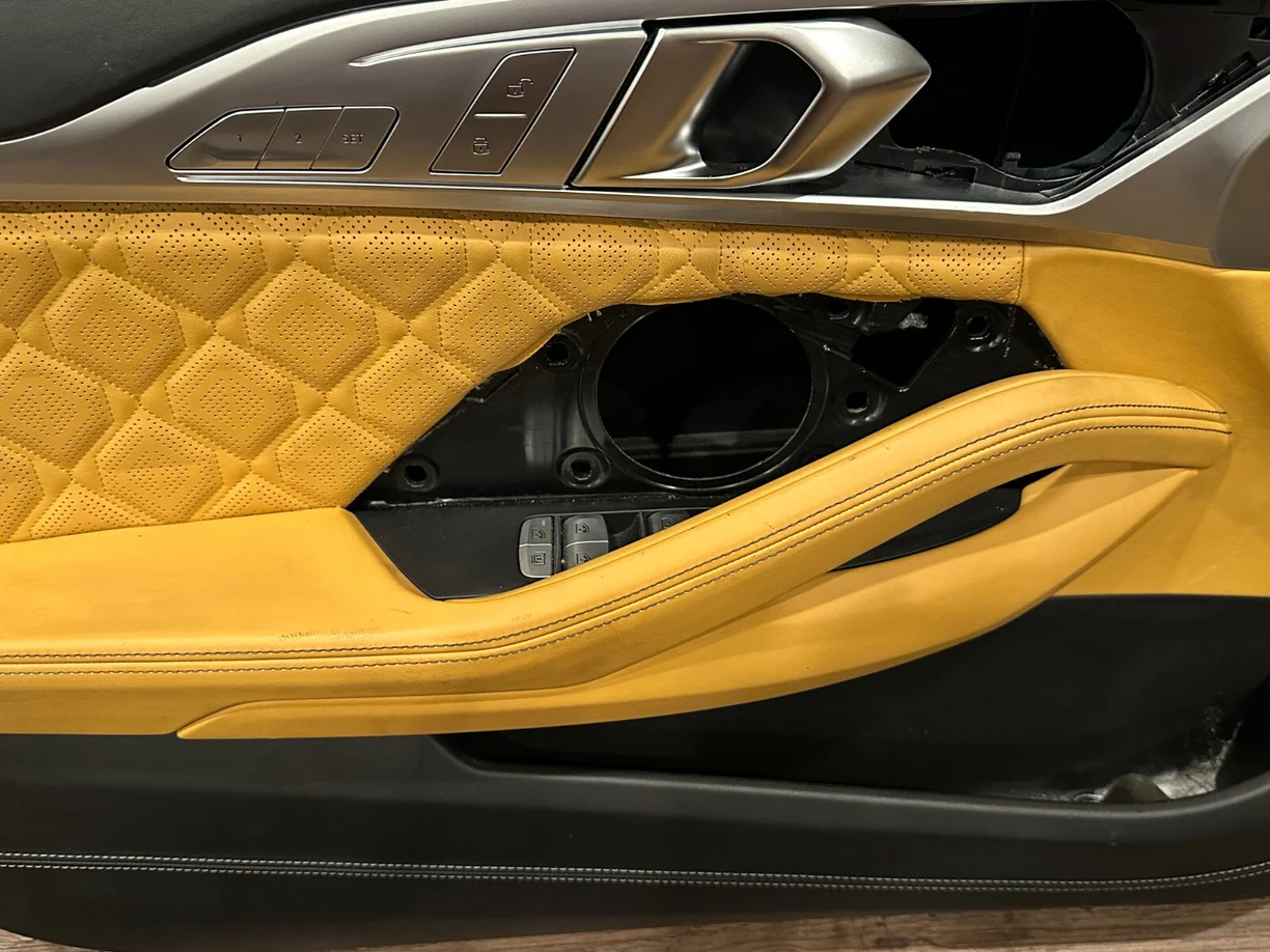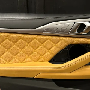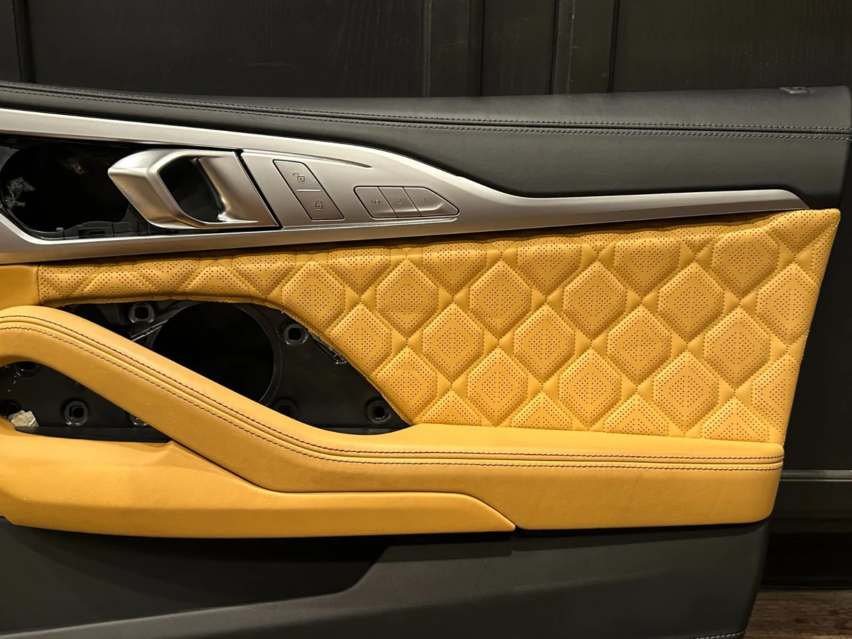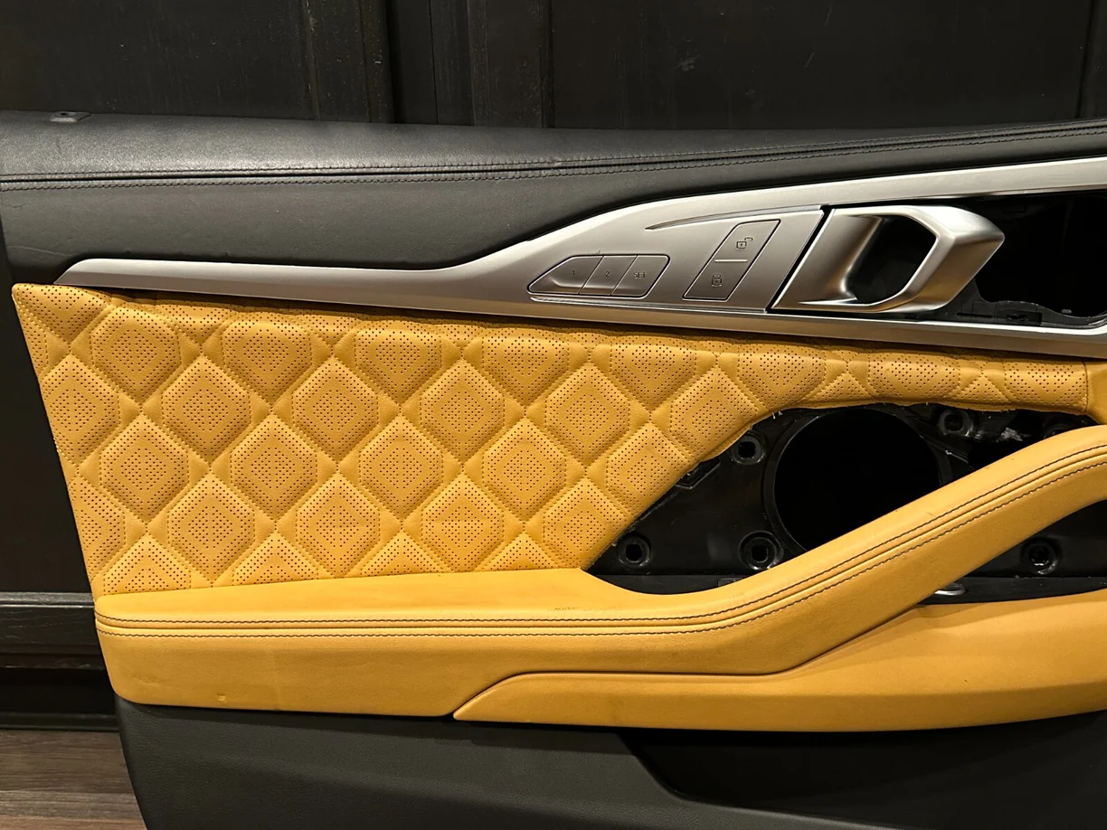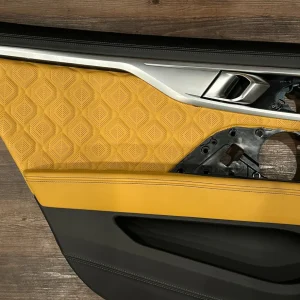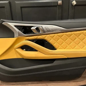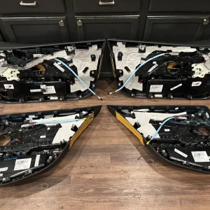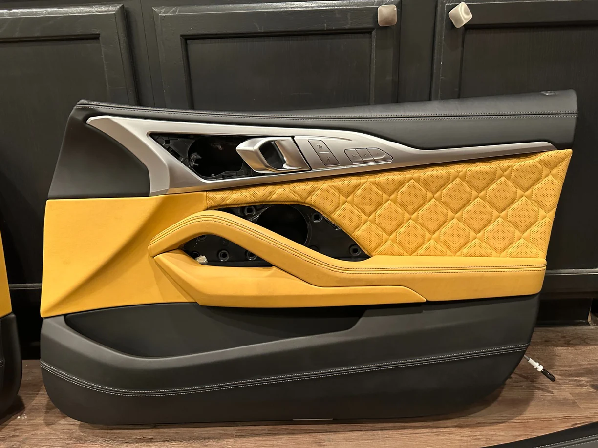 For sale is a complete set of OEM BMW Used Door Panels Europe (Left & Right) in the stunning Sakhir Orange / Black leather interior trim, removed from a 2020 BMW M8 Competition with only 39,000 miles. These door cards are factory-original components and feature the premium materials, stitching, and accent trim specific to the M8 Competition series.