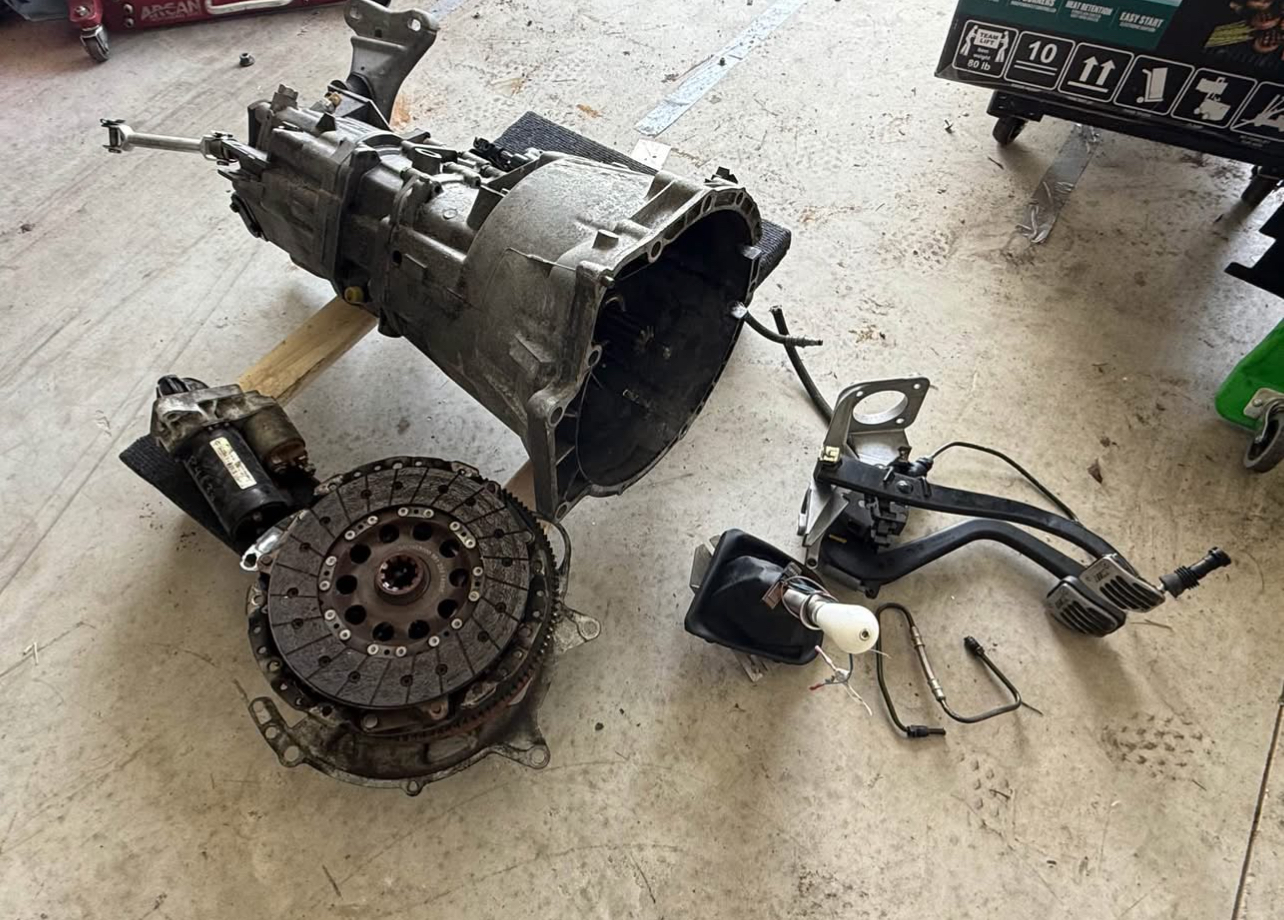 Short shifter, gas and brake pedals, line, sensor/wiring, clutch and flywheel (should probably be replaced), transmission mount, etc.