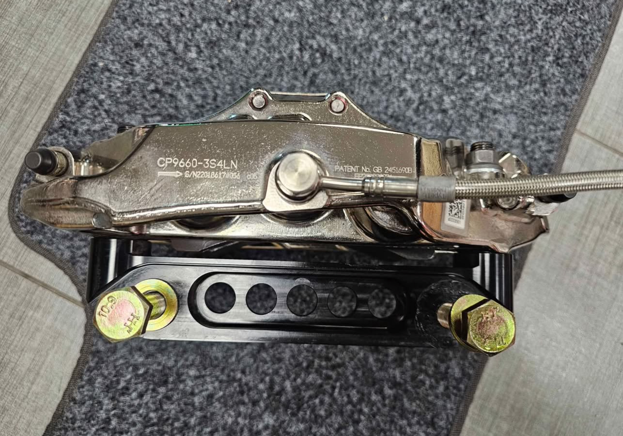 Saves roughly 14 unsprung lbs. from nose vs. OEM brakes